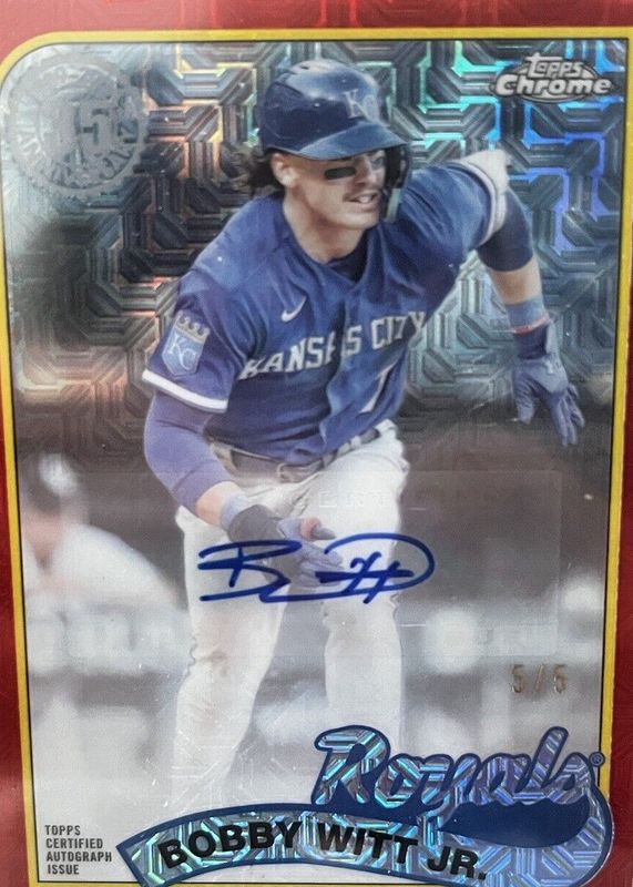 Auctions Ending Soon for Bobby Witt Jr. 2024 Topps Silver Pack #2T89C-11 1989 Chrome Promo Autographs - Red Refractor (Series 2) /5 RAW