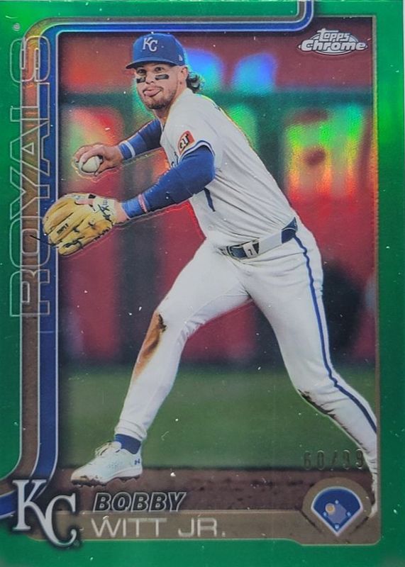 The Bobby Witt Jr. 2025 Topps Chrome #93 Green Refractor /99 card in Raw condition has moved up $13.15 (+60.2%) in the last 30 days and was last sold for $34.99 .