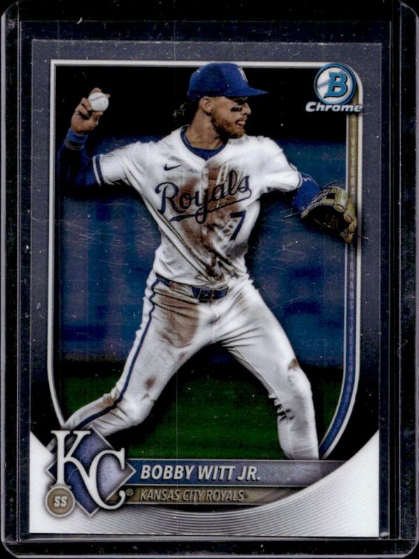 The Bobby Witt Sr. 2025 Bowman Chrome #7 Base card is 1 of 64 Bobby Witt Sr.'s card variations in the 2025 Bowman Chrome set being tracked by Sports Card Investor, including Geometric Refractor /499, Refractor /499, Pulsar Refractor /399, Fuchsia Refractor /299, and Fuchsia Wave Refractor /299.