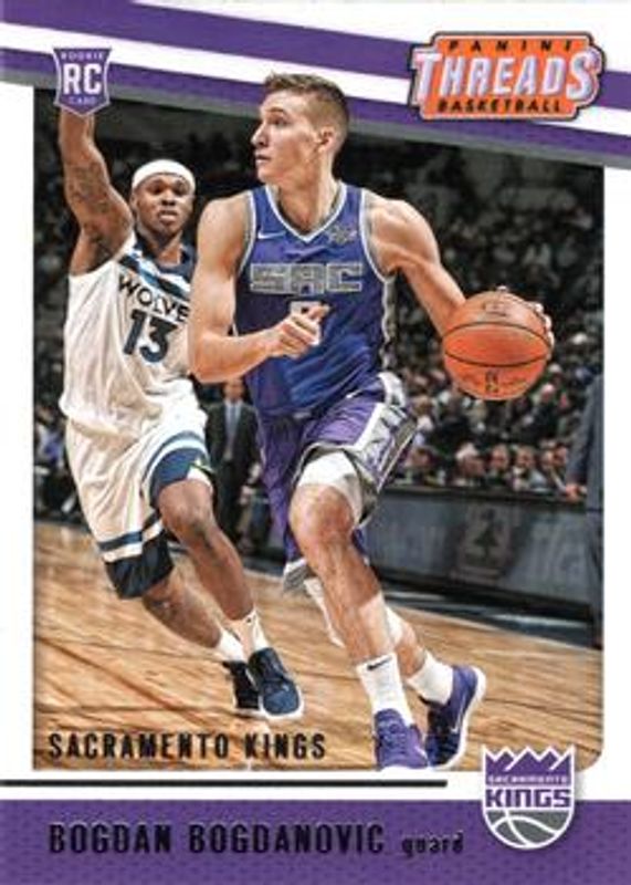 The Bogdan Bogdanovic 2017 Threads #64 Base Rookie card is 1 of 6 Bogdan Bogdanovic's card variations in the 2017 Threads set being tracked by Sports Card Investor, including Dazzle /199, Dazzle - Red /99, Dazzle - Blue /25, Dazzle - Gold /10, and Dazzle - Black /1.