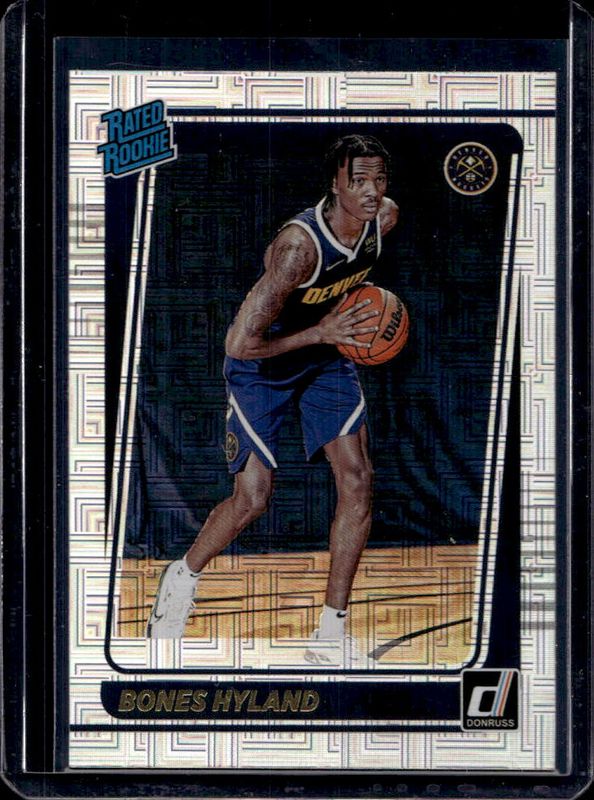 The Bones Hyland 2021 Donruss #244 Choice Rookie card is 1 of 61 Bones Hyland's card variations in the 2021 Donruss set being tracked by Sports Card Investor, including Base, Green Ice, Green Laser, Green & Yellow Laser, and Orange Laser.