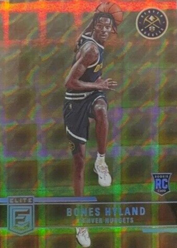 This card is 1 of 16 Bones Hyland's card variations in the 2021 Elite set being tracked by Sports Card Investor, including Base Rookie /999, Asia Exclusive, Asia Hyper Red, Aspirations (/97), and Status (/3).