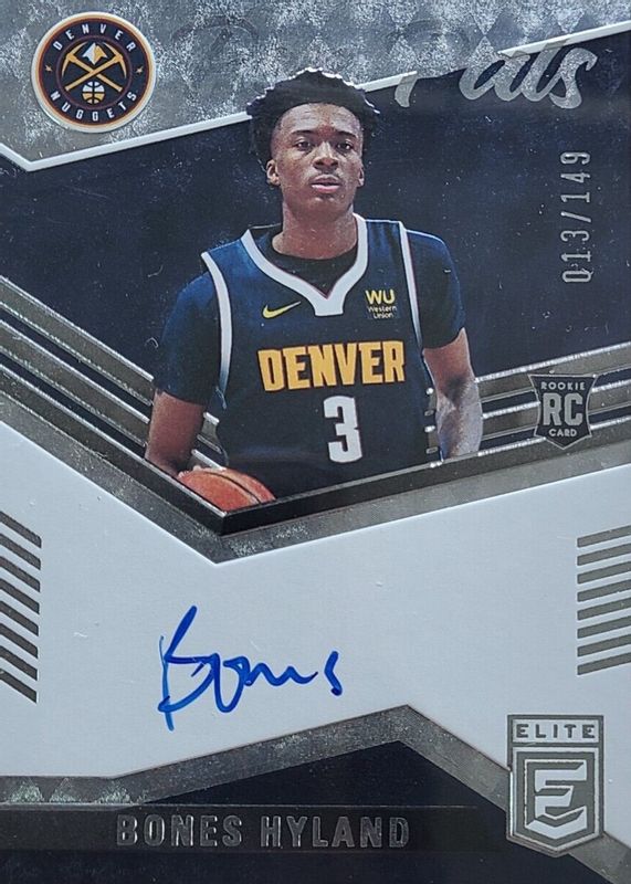 This card is 1 of 16 Bones Hyland's card variations in the 2021 Elite set being tracked by Sports Card Investor, including Base Rookie /999, Asia Exclusive, Asia Hyper Gold, Asia Hyper Red, and Aspirations (/97).