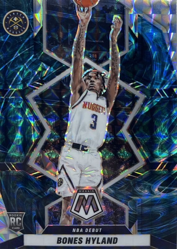 The Bones Hyland 2021 Mosaic #271 NBA Debut - Genesis /(SSP) Rookie card in Raw condition has not changed in price in the last 30 days and was last sold for $3.00 .