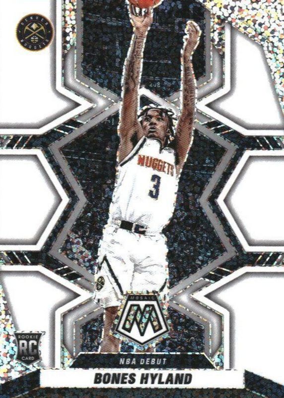 The Bones Hyland 2021 Mosaic #271 NBA Debut - White Sparkle /(SSP) Rookie card in Raw condition has not changed in price in the last 30 days and was last sold for $10.00 .