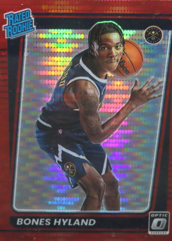 This card is 1 of 43 Bones Hyland's card variations in the 2021 Optic set being tracked by Sports Card Investor, including Base, Blue Pulsar, Blue Velocity, Checkerboard, and Choice Red & Green.