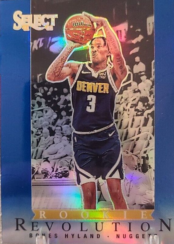 The Bones Hyland 2021 Select #19 Rookie Revolution - Blue card in Raw condition has not changed in price in the last 30 days and was last sold for $1.16 .