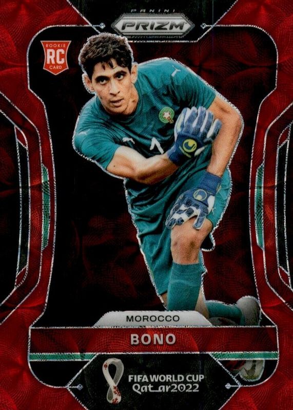 This card is 1 of 37 Bono's card variations in the 2022 Prizm World Cup set being tracked by Sports Card Investor, including Base, Breakaway, Green Ice, Green Wave, and Hyper.