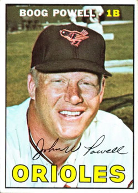 The Boog Powell 1967 Topps #230 Base card is 1 of 2 Boog Powell's card variations in the 1967 Topps set being tracked by Sports Card Investor, including Posters.
