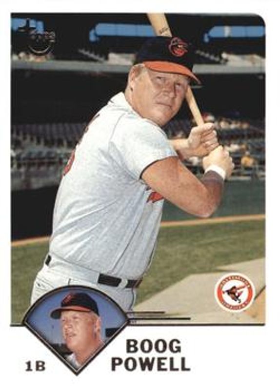 The Boog Powell 2003 Topps Retired Signature Edition #94 Base card is 1 of 4 Boog Powell's card variations in the 2003 Topps Retired Signature Edition set being tracked by Sports Card Investor, including Black /99, Autographs, and Autographs - Refractor /25.