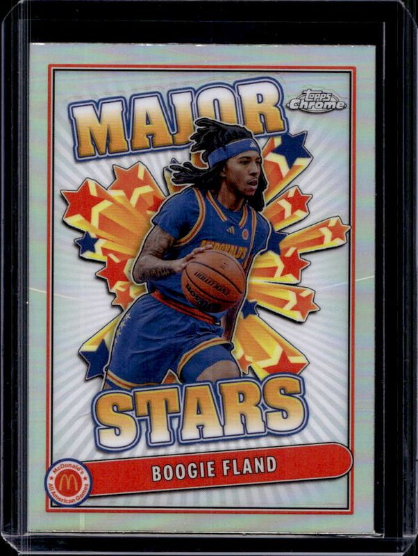 The Boogie Fland 2024 Topps Chrome McDonald's All-American #SES-JOF Major Stars - Refractor card is 1 of 112 Boogie Fland's card variations in the 2024 Topps Chrome McDonald's All-American set being tracked by Sports Card Investor, including #79 Base, #29 Base, #29 Blue RayWave Refractor, #79 Blue RayWave Refractor, and #29 McDonald's Logo Refractor.