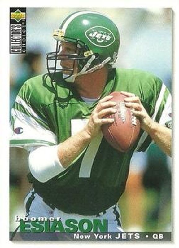 The Boomer Esiason 1995 Upper Deck Collector's Choice #111 Base card is 1 of 3 Boomer Esiason's card variations in the 1995 Upper Deck Collector's Choice set being tracked by Sports Card Investor, including Platinum Player's Club, and Player's Club.