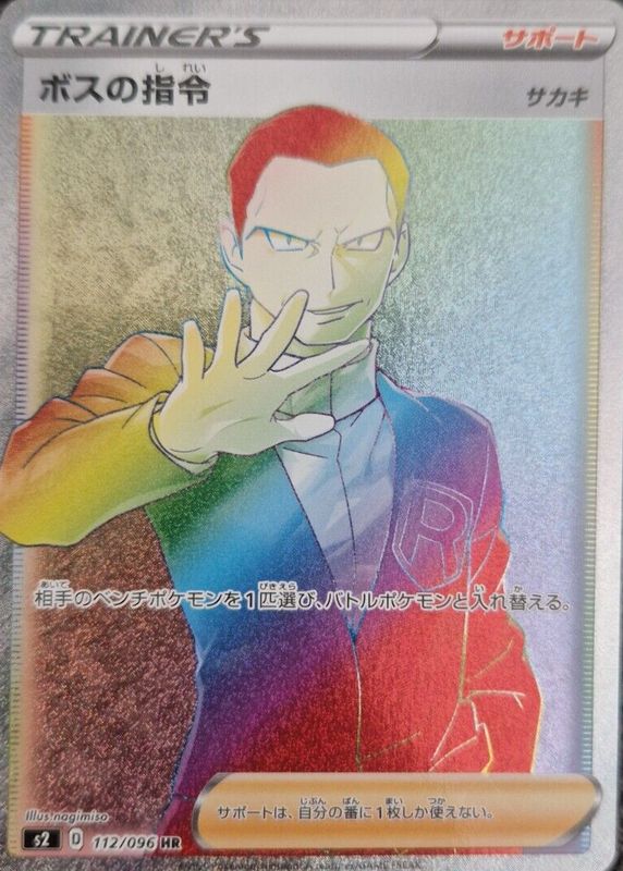 The Boss's Orders 2020 Japanese Sword & Shield: Rebellion Crash #112/096 Hyper Rare card in Raw TCG (Near Mint) condition has not changed in price in the last 30 days and was last sold for $27.96 .