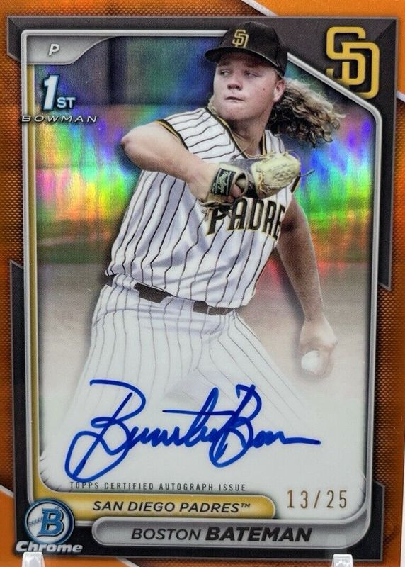 Boston Bateman 2024 Bowman Chrome 1st Prospect True Orange Auto /25 Padres