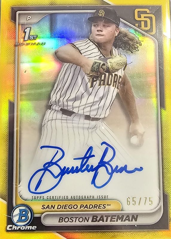 2024 Bowman Draft Chrome Boston Bateman 1st Yellow Refractor Auto /75 - PADRES