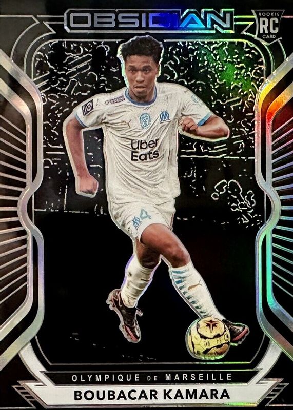 This card is 1 of 12 Boubacar Kamara's card variations in the 2020 Obsidian set being tracked by Sports Card Investor, including Electric Etch Purple /75, Electric Etch Orange /50, Electric Etch Blue /30, Electric Etch Red Flood /28, and Electric Etch Red Pulsar /28.