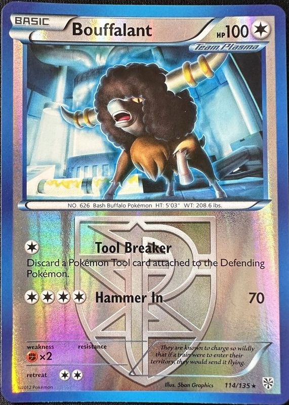 The Bouffalant 2013 Black & White: Plasma Storm #114/135 Reverse Holo card in Raw TCG (Near Mint) condition has moved down -$0.15 (-4.8%) in the last 30 days and was last sold for $2.99 .