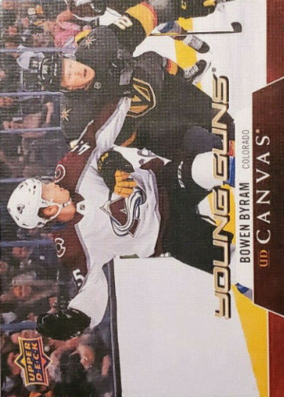 This card is 1 of 10 Bowen Byram's card variations in the 2020 Upper Deck set being tracked by Sports Card Investor, including Young Guns Base, Young Guns - Clear Cut, Young Guns - Clear Cut Exclusives, Young Guns - French, and Young Guns - Jumbo.