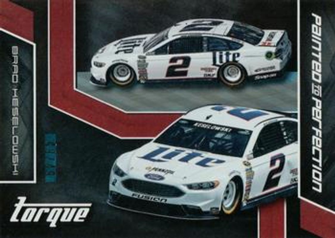 The Brad Keselowski 2016 Torque NASCAR #PTP12 Painted to Perfection Red /49 card is 1 of 132 Brad Keselowski's card variations in the 2016 Torque NASCAR set being tracked by Sports Card Investor, including #87 Base, #11 Base, #61 Base, #87 Gold, and #61 Gold.