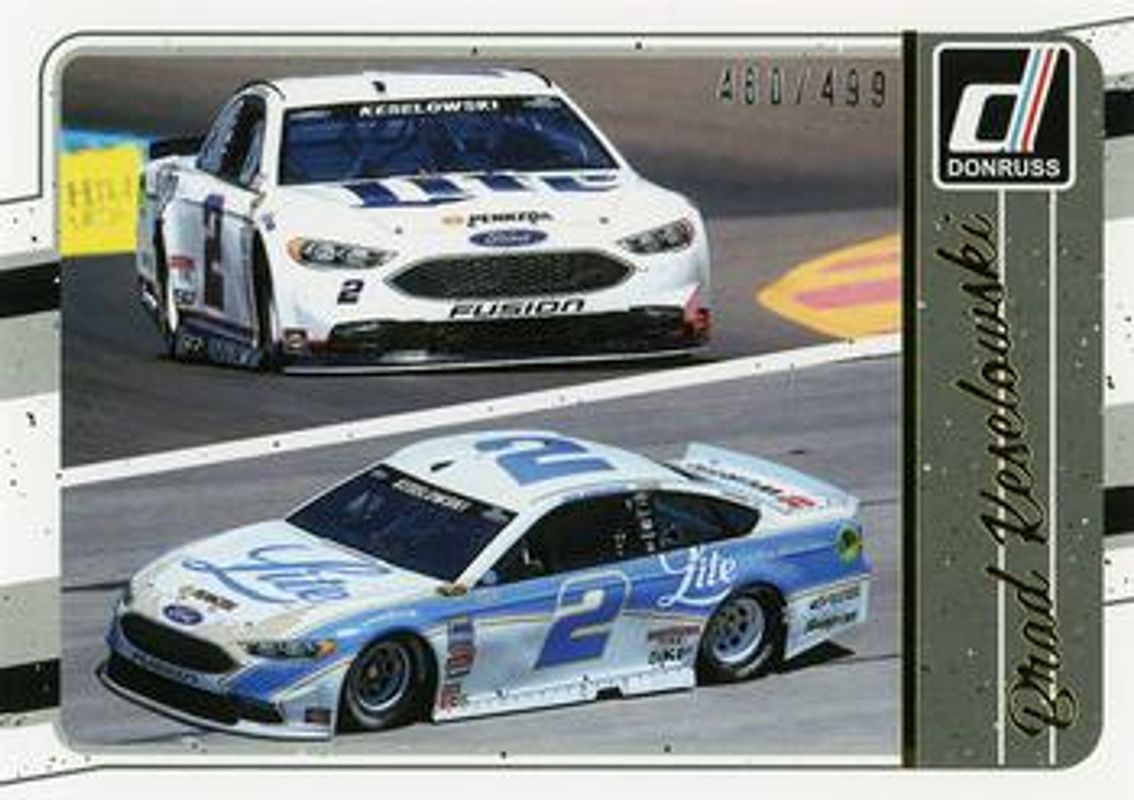 The Brad Keselowski 2017 Donruss NASCAR #104 Gold Foil /499 card is 1 of 85 Brad Keselowski's card variations in the 2017 Donruss NASCAR set being tracked by Sports Card Investor, including #127 Base, #98 Base, #9 Base, #39 Base, and #149 Base.