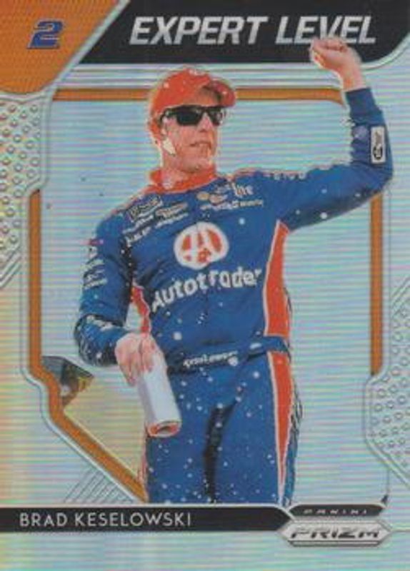 The Brad Keselowski 2019 Prizm NASCAR #EL-9 Expert Level card is 1 of 54 Brad Keselowski's card variations in the 2019 Prizm NASCAR set being tracked by Sports Card Investor, including #2 Base, #69 Base, #69 Camo, #2 Camo, and #69 Purple Flash (Hobby).