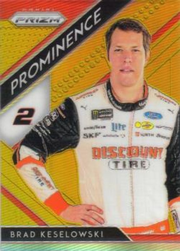 The Brad Keselowski 2019 Prizm NASCAR #69 Gold /10 card is 1 of 54 Brad Keselowski's card variations in the 2019 Prizm NASCAR set being tracked by Sports Card Investor, including #2 Base, #69 Base, #69 Camo, #2 Camo, and #69 Purple Flash (Hobby).