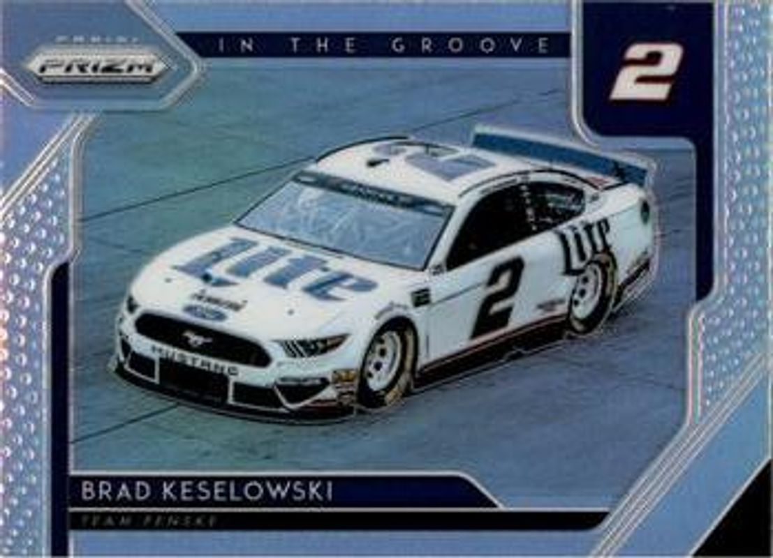 The Brad Keselowski 2019 Prizm NASCAR #ITG-8 In the Groove card is 1 of 54 Brad Keselowski's card variations in the 2019 Prizm NASCAR set being tracked by Sports Card Investor, including #2 Base, #69 Base, #69 Camo, #2 Camo, and #69 Purple Flash (Hobby).