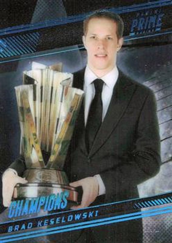 The Brad Keselowski 2023 Panini Prime #62 Holo Platinum Blue /1 card is 1 of 76 Brad Keselowski's card variations in the 2023 Panini Prime set being tracked by Sports Card Investor, including #21 Base /49, #62 Base /49, #62 Holo Gold /25, #21 Holo Gold /25, and #21 Holo Silver /10.