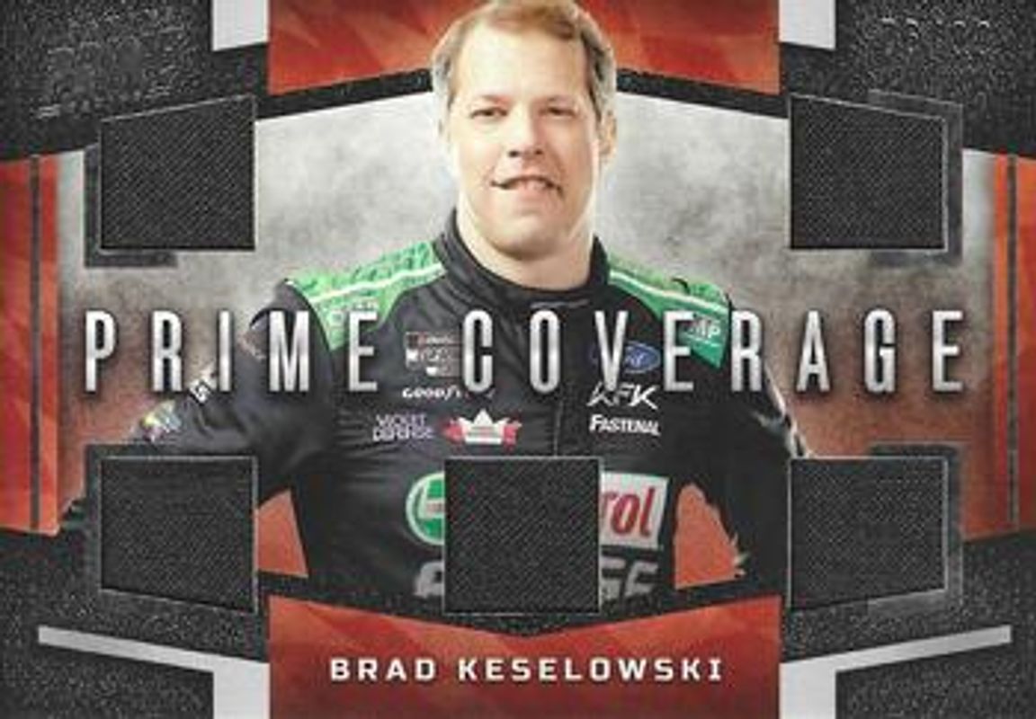 The Brad Keselowski 2023 Panini Prime #PC-BKE Prime Coverage /99 card is 1 of 76 Brad Keselowski's card variations in the 2023 Panini Prime set being tracked by Sports Card Investor, including #21 Base /49, #62 Base /49, #62 Holo Gold /25, #21 Holo Gold /25, and #21 Holo Silver /10.