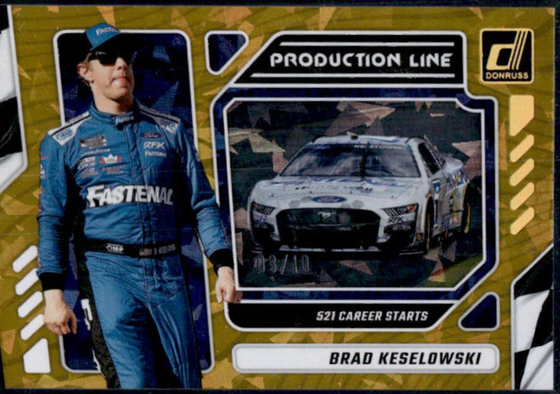 Brad Keselowski 2024 Donruss NASCAR #6 Production Line Gold Ice /10 RAW Price Guide