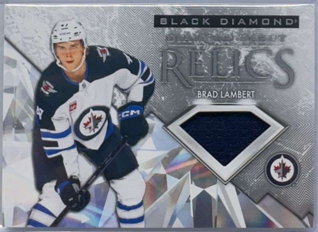 The Brad Lambert 2024 Upper Deck Black Diamond #DD-BL Diamond Debut Relics Jersey Rookie card is 1 of 33 Brad Lambert's card variations in the 2024 Upper Deck Black Diamond set being tracked by Sports Card Investor, including Base /349, Diamond Relic Rookies /99, Premium Relics /50, Diamond Relic Rookies Emerald /10, and Emerald /10.