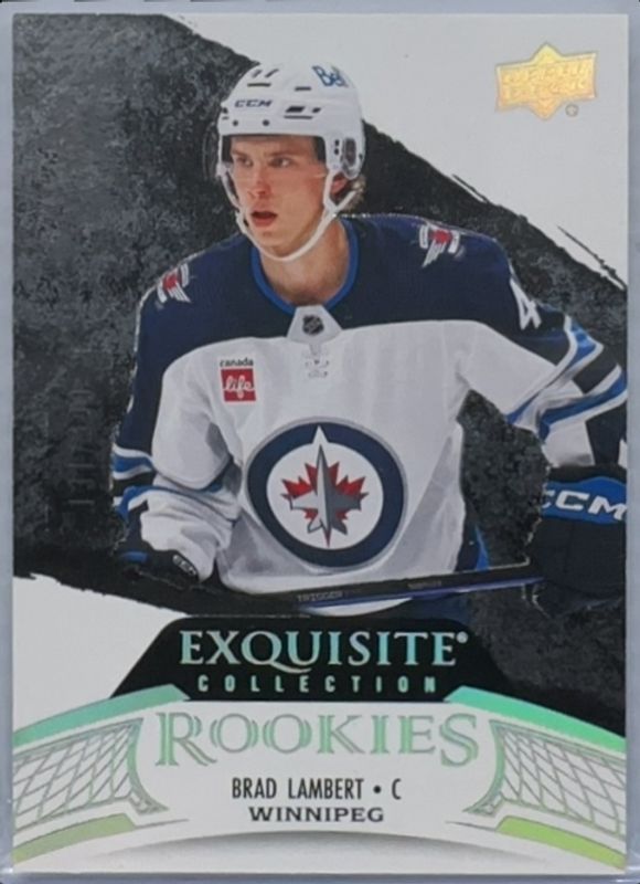The Brad Lambert 2024 Upper Deck Black Diamond #R-BL Exquisite Collection Rookies /399 card is 1 of 33 Brad Lambert's card variations in the 2024 Upper Deck Black Diamond set being tracked by Sports Card Investor, including Base /349, Diamond Relic Rookies /99, Premium Relics /50, Diamond Relic Rookies Emerald /10, and Emerald /10.