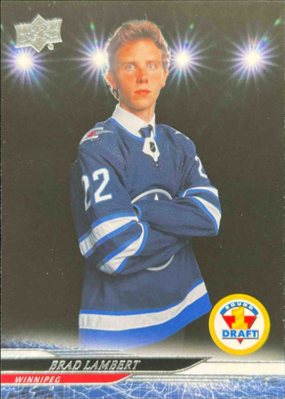 The Brad Lambert 2024 Upper Deck Extended Series #738 Base Rookie card is 1 of 27 Brad Lambert's card variations in the 2024 Upper Deck Extended Series set being tracked by Sports Card Investor, including Clear Cut, Outburst, Deluxe /250, Exclusives /100, and Outburst Red /25.
