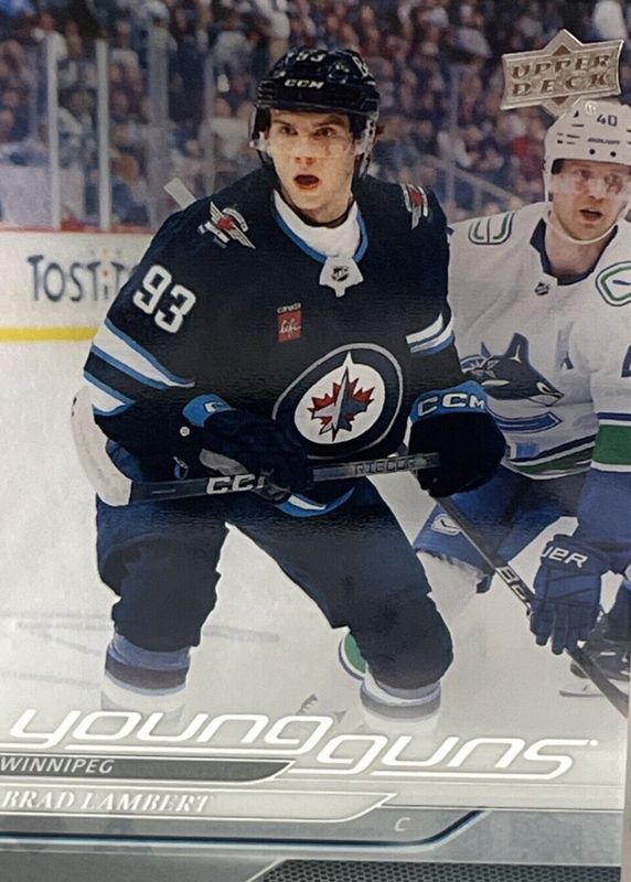 This card is 1 of 8 Brad Lambert's card variations in the 2024 Upper Deck set being tracked by Sports Card Investor, including Young Guns Base, Young Guns - Outburst Silver, Young Guns - Deluxe /250, Young Guns - UD Exclusives /100, and Young Guns - Outburst Red /25.