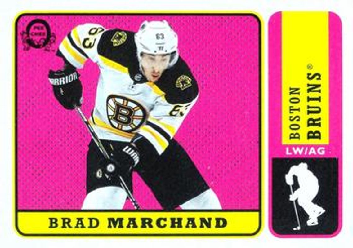 The Brad Marchand 2018 O-Pee-Chee Retro Box Bottoms card is 1 of 13 Brad Marchand's card variations in the 2018 O-Pee-Chee set being tracked by Sports Card Investor, including Base, Gold Border Glossy, Retro, Retro Blank Back, and Retro No Name Scratch Off.