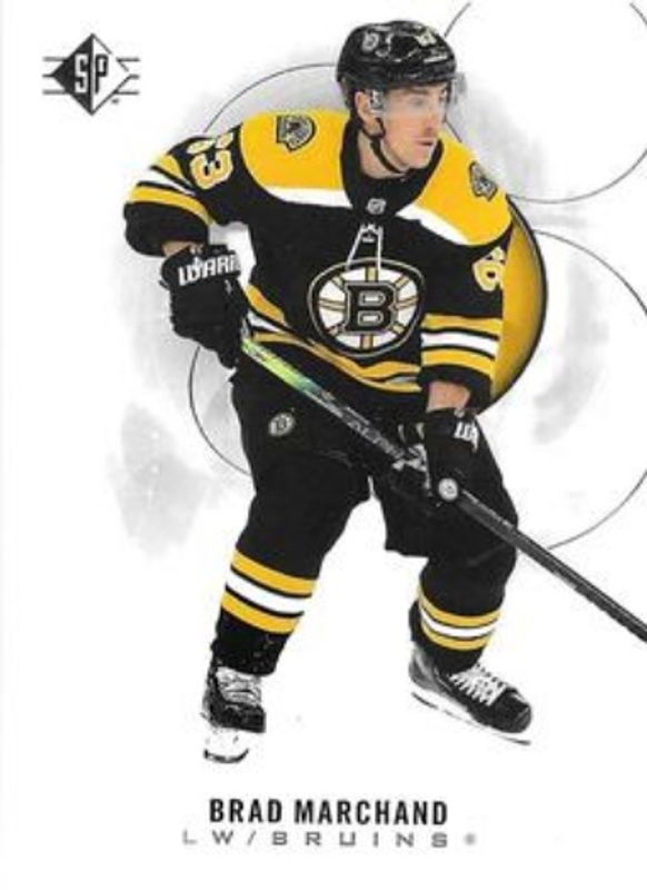 The Brad Marchand 2020 SP #35 Base /2299 card is 1 of 14 Brad Marchand's card variations in the 2020 SP set being tracked by Sports Card Investor, including Blue, Authentic Profiles - Blue, Authentic Profiles Jersey, Authentic Profiles - Pyrotechnic Gold, and Authentic Profiles Signatures.