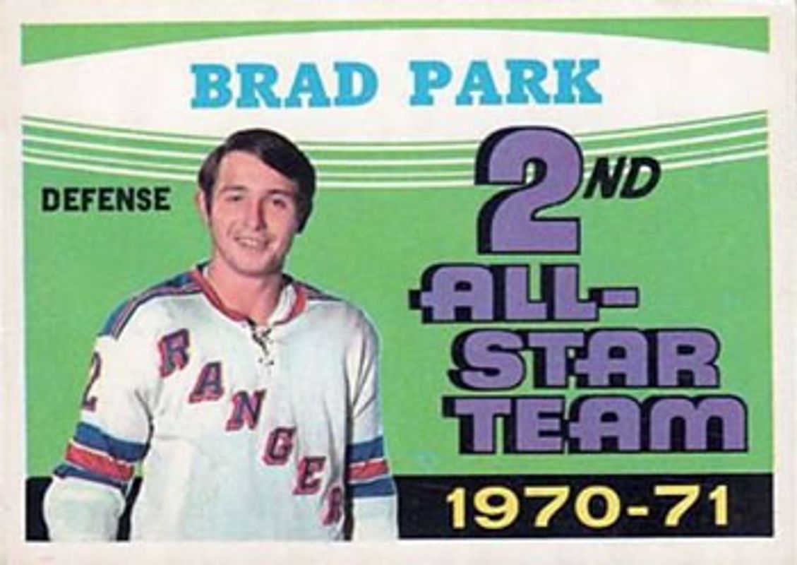 The Brad Park 1971 O-Pee-Chee #257 Base card is 1 of 2 Brad Park's card variations in the 1971 O-Pee-Chee set being tracked by Sports Card Investor, including Base.