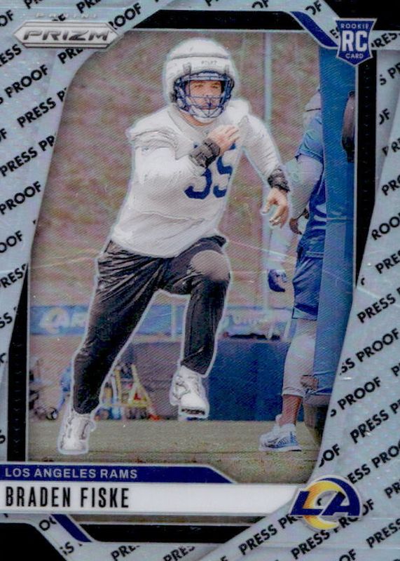 The Braden Fiske 2024 Prizm #310 Press Proof /(SSP) Rookie card in Raw condition has not changed in price in the last 30 days and was last sold for $7.50 .
