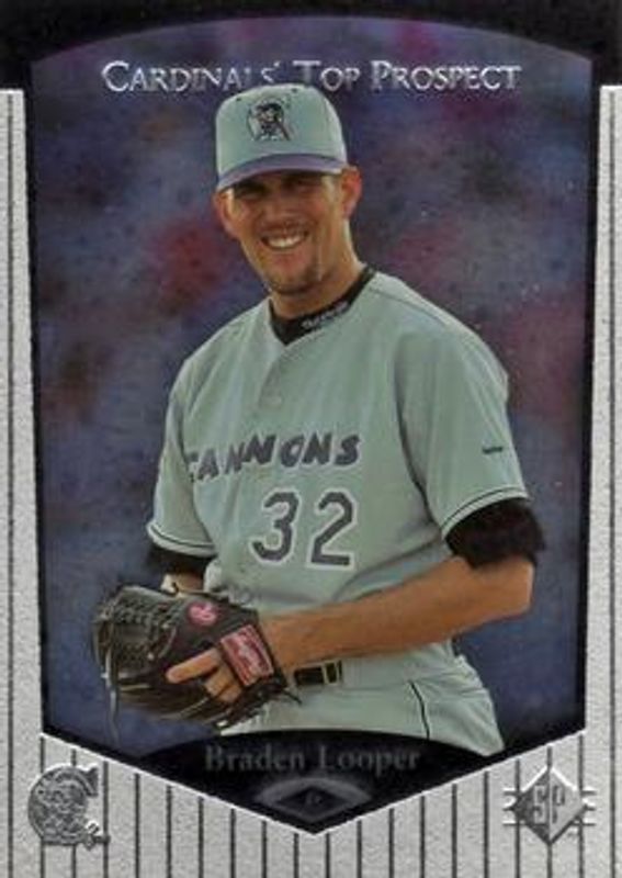 The Braden Looper 1998 SP Top Prospects #103 Base card is 1 of 2 Braden Looper's card variations in the 1998 SP Top Prospects set being tracked by Sports Card Investor, including President's Edition /10.