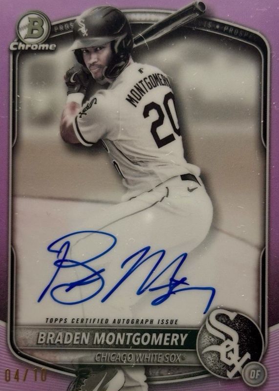 Auctions Ending Soon for Braden Montgomery 2025 Bowman #CPA-BM Chrome Prospect Auto - Pearl Refractor /10 RAW