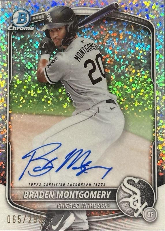 The Braden Montgomery 2025 Bowman #CPA-BM Chrome Prospect Auto - Speckle Refractor /299 card in Raw condition has moved down -$0.01 (-0.1%) in the last 30 days and was last sold for $19.99 .