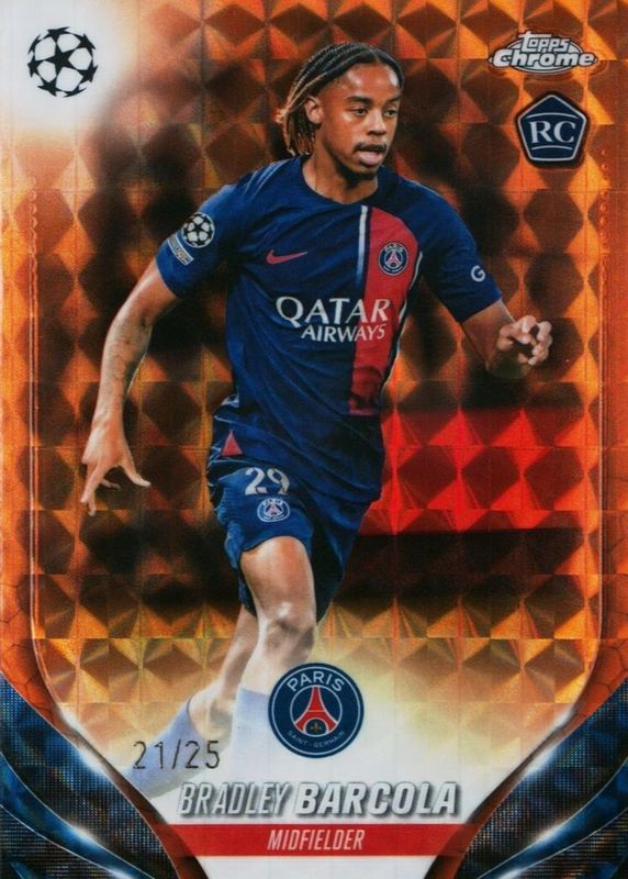 Bradley Barcola 2023 Topps Chrome UEFA Club Competitions #69 Orange Refractor /25 Rookie RAW Price Guide