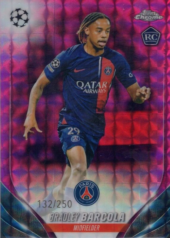 2023-24 Topps Chrome UEFA BRADLEY BARCOLA RC #69 PINK GEOMETRIC REFRACTOR /250