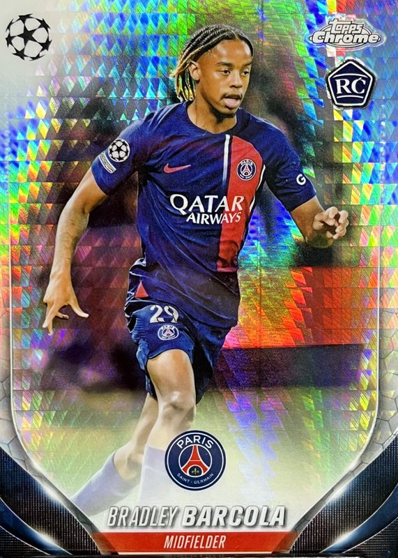 Best Prices Available For Sale of Bradley Barcola 2023 Topps Chrome UEFA Club Competitions #69 Prism Refractor