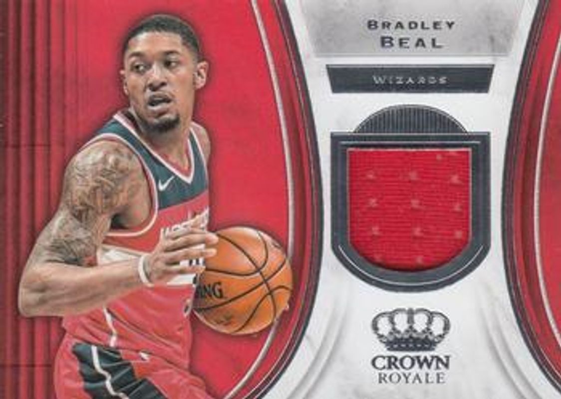 The Bradley Beal 2018 Crown Royale #J-BB Jerseys card is 1 of 16 Bradley Beal's card variations in the 2018 Crown Royale set being tracked by Sports Card Investor, including Base, Crystal /99, Crystal Red /49, Crystal Purple /25, and Crystal Gold /10.