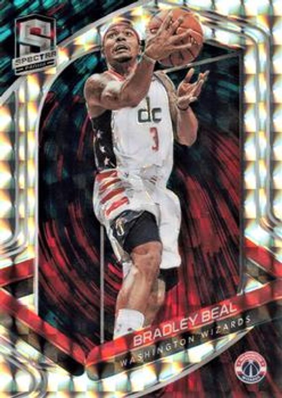 The Bradley Beal 2019 Spectra #62 Interstellar /49 card is 1 of 10 Bradley Beal's card variations in the 2019 Spectra set being tracked by Sports Card Investor, including Base, Silver, Celestial /99, Color Blast /(SSP), and Meta /25.