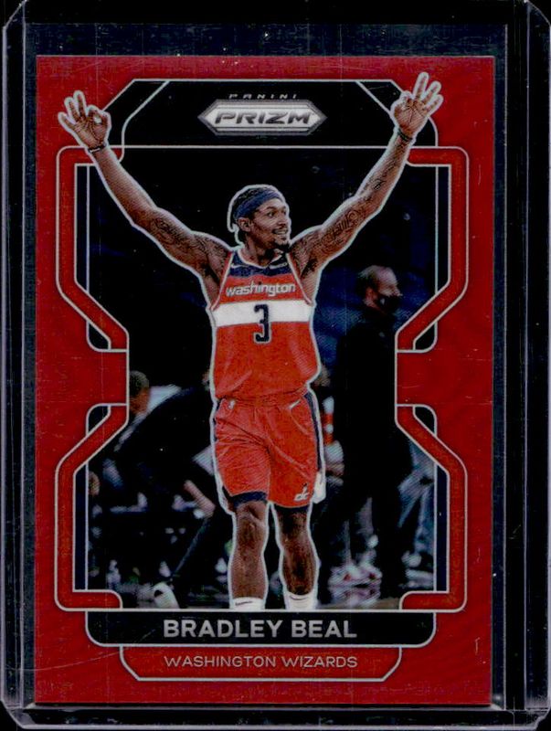 The Bradley Beal 2021 Prizm #45 Red /299 card is 1 of 87 Bradley Beal's card variations in the 2021 Prizm set being tracked by Sports Card Investor, including #45 Base, #45b Base, #45 Blue NBA 75th Anniversary, #45 Blue Wave, and #45 Choice Blue Yellow Green.