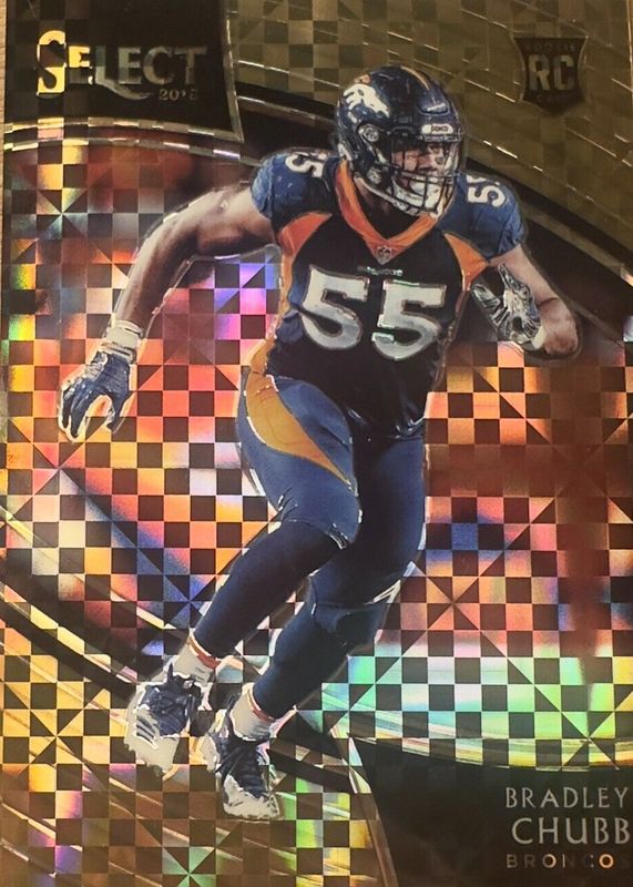 This card is 1 of 39 Bradley Chubb's card variations in the 2018 Select set being tracked by Sports Card Investor, including Concourse, Field Level, Premier Level, Concourse Silver, and Field Level Silver.