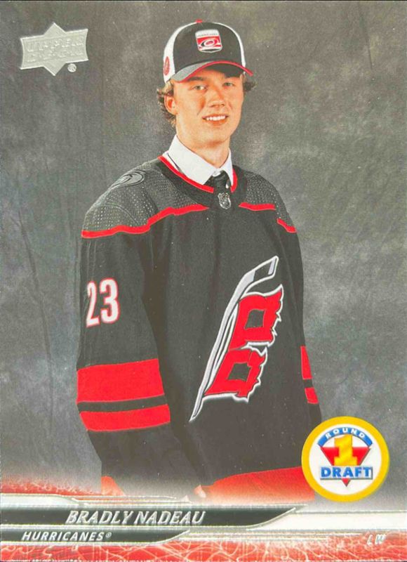 The Bradly Nadeau 2024 Upper Deck Extended Series #737 Base Rookie card is 1 of 21 Bradly Nadeau's card variations in the 2024 Upper Deck Extended Series set being tracked by Sports Card Investor, including Clear Cut, Outburst, Deluxe /250, Exclusives /100, and Outburst Red /25.