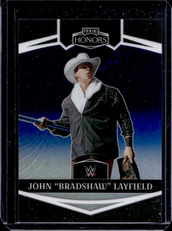The Bradshaw 2023 Chronicles WWE #329 Blue /99 card is 1 of 31 Bradshaw's card variations in the 2023 Chronicles WWE set being tracked by Sports Card Investor, including #259 Base, #329 Base, #259 Bronze, #329 Silver, and #329 Silver Wave.